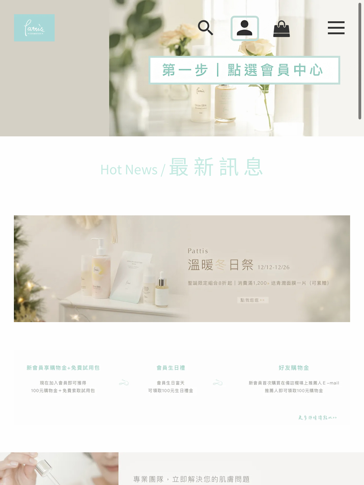 只要於Pattis官方網站註冊,即可成為一般會員,並可獲得100元新會員購物金(使用期限:1個月),先加入會員再行購物,才可折抵100元購物金。