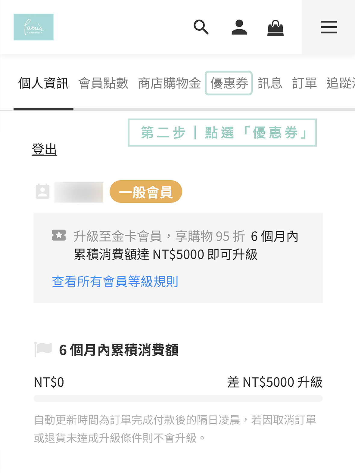 ※貼心提醒:新會員購物金將在註冊後由系統自動發送,如在結帳同時加入會員,系統則不會發送新會員購物金。