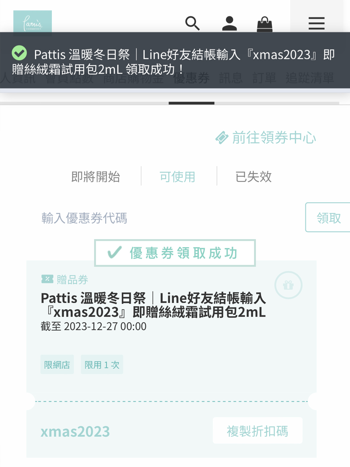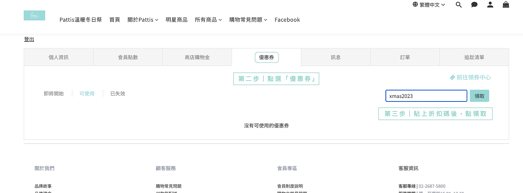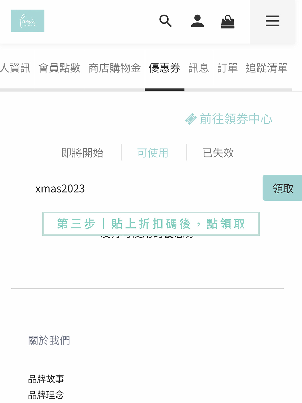 或照以下步驟可將折扣優惠代碼轉為優惠券,存入會員帳戶。