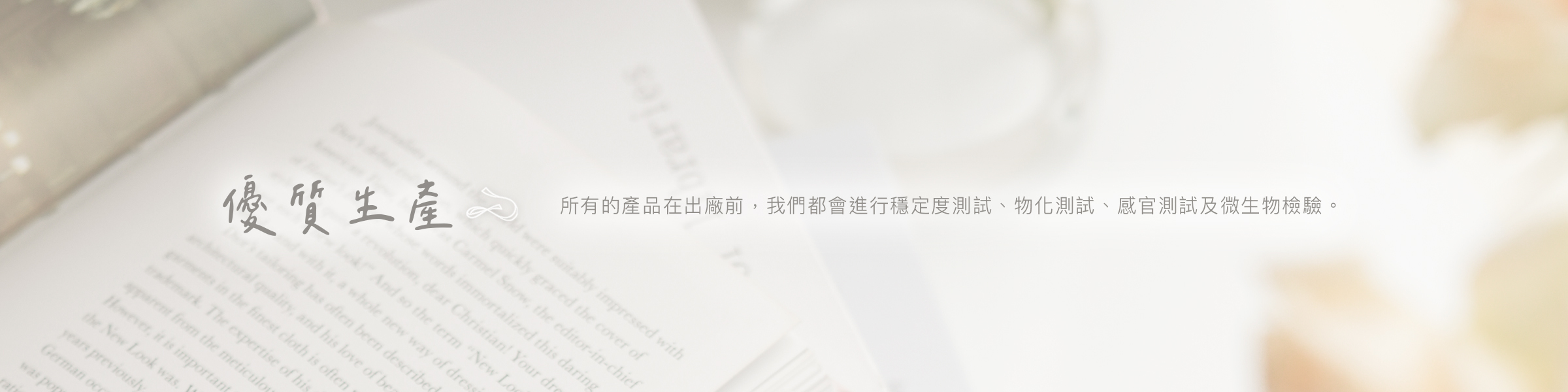 所有的產品在出廠前,我們都會進行穩定度測試、物化測試、感官測試及微生物檢驗。